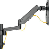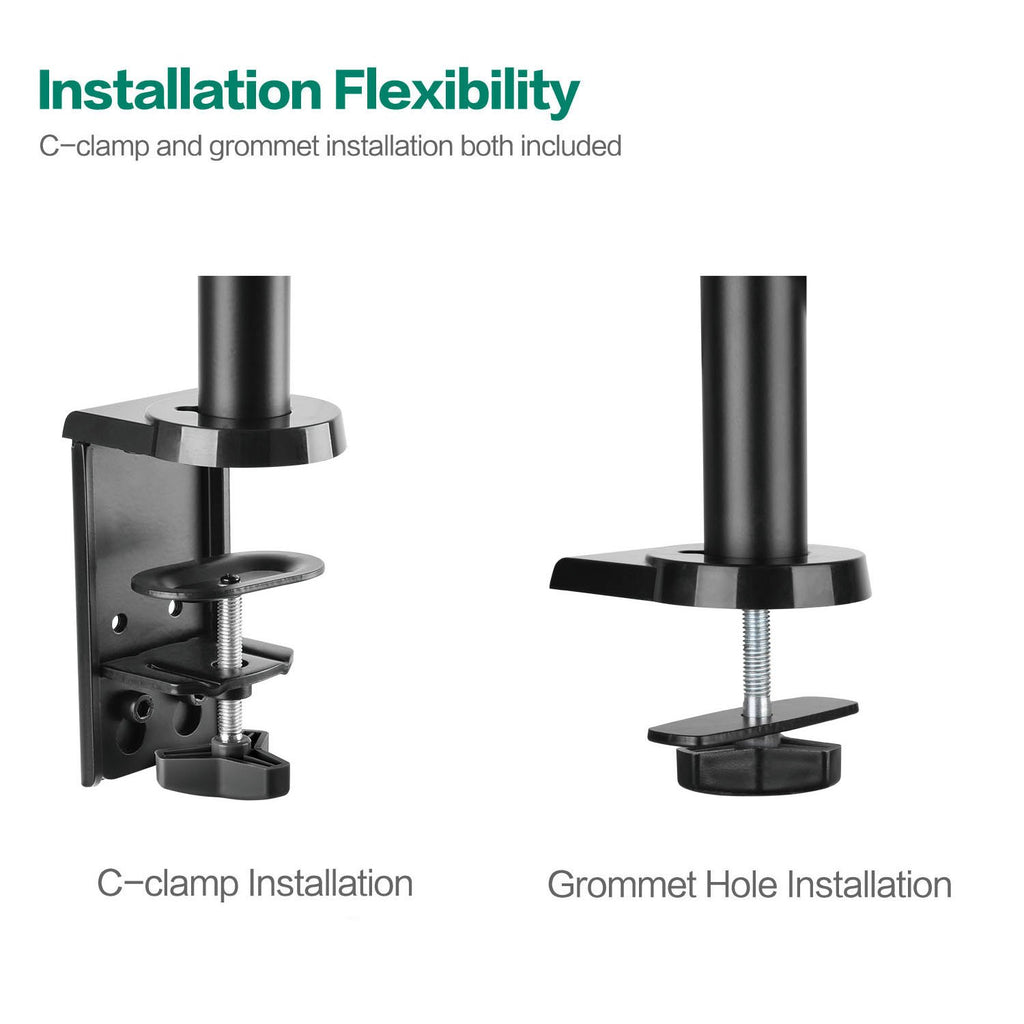 This is a pretty robust monitor mount with some nice features.The collar that attaches the arm to the vertical post has a rubber bushing, which keeps the monitor arm in place even when the screw is loosened. This allows you to loosen the screw without having the arm and monitor slip down on the post, making height adjustments easier.The VESA plate slips onto a bracket on the end of the arm with a thumbscrew, so the monitor can be easily removed without tools.The cable management clip on the post even has onboard storage for the allen wrenches that you use for adjusting the tension on the arm springs. Thanks some good thinking right there.My only critique is that the clamp for the table top doesn’t open very wide, so check the thickness of your desk before buying.